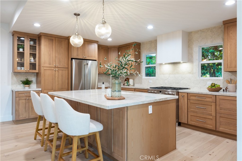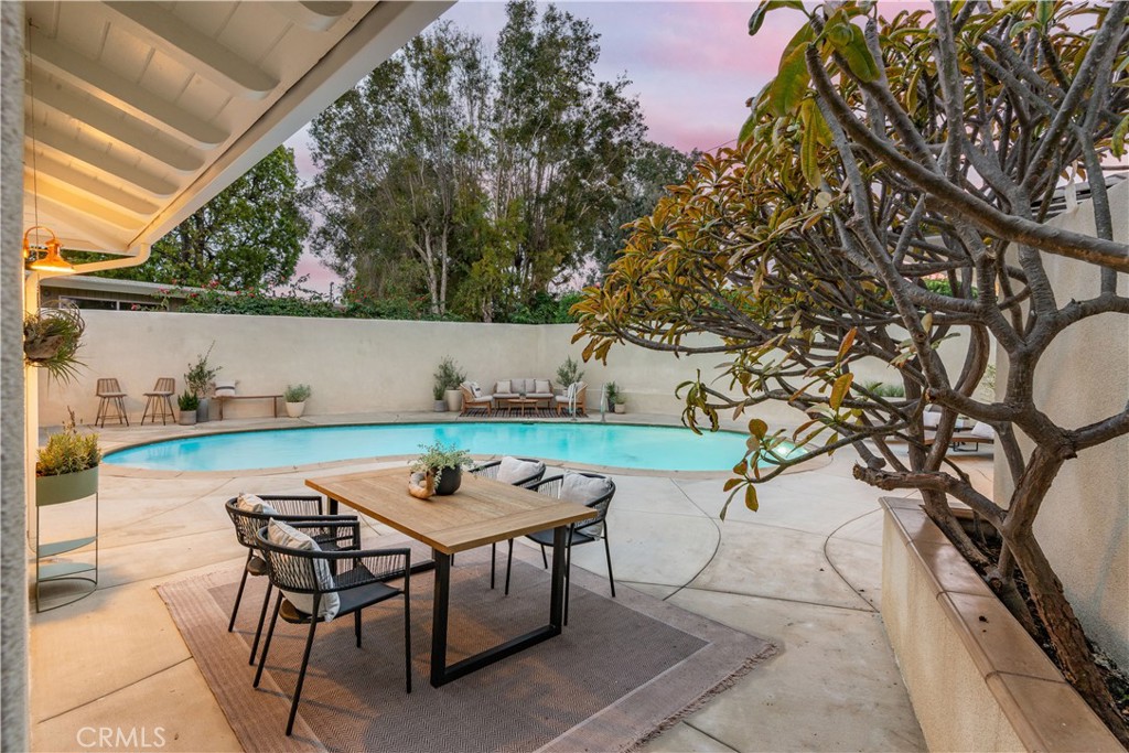 SHOWCASE PARK ESTATES POOL HOME FEATURING A COMPREHENSIVE TOP-TO-BOTTOM REMODEL. This beautifully upgraded residence offers a rare opportunity to own a home with brand-new finishes and a fresh, never lived in feel. Completely transformed with today's most desired features, this stunning residence embodies the warmth and ease of an organic California ranch style home where curated design, natural materials, and thoughtful craftsmanship come together in perfect harmony. Every space has been thoughtfully redesigned with a focus on effortless indoor-outdoor living featuring all new engineered oak flooring and a cohesive palette that guides you through beautifully redefined spaces. The formal living room (potential home office/flex space/fourth bedroom) off the entry features a fireplace and sliders leading to a serene private patio, one of several outdoor spaces throughout the property. The gorgeous and BRAND NEW open concept kitchen features a large island with Taj Mahal quartzite, custom backsplash, generous use of cabinetry, all-new appliances, and an inviting flow into the family room. A walk-in butler's pantry with beverage service, cabinetry, and wine fridge elevates both daily living and effortless entertaining. A well-placed powder room off the kitchen also connects directly to the pool. The family room centers around a cozy fireplace and opens to the dining room. All the bedrooms have new Milgard windows and bathrooms have been fully upgraded with designer-selected tilework, fixtures, and finishes. The separate bedroom wing boasts three bedrooms and two additional bathrooms. The primary suite off the pool features backyard views, a walk-in closet and a stunning spa-inspired bath. The exterior is just as thoughtfully renewed...the pool has been recently plastered with new waterline tile accents as well as multiple patio areas creating endless opportunities for outdoor living at its finest. There is a long, elegant driveway with an electronic gate which leads to the finished two-car garage (optional casita/gym space). Additional upgrades include tankless water heater, central air, paid off solar panels, new doors, & new Milgard windows. Lovely curb appeal with all new sod, landscaping, & lighting. Residents enjoy the gorgeous tree-lined streets, wide lots, nearby park, and excellent schools. Set on a prime lot in one of the neighborhood's most desirable locations, this home offers the perfect blend of elevated design and Park Estates living.
