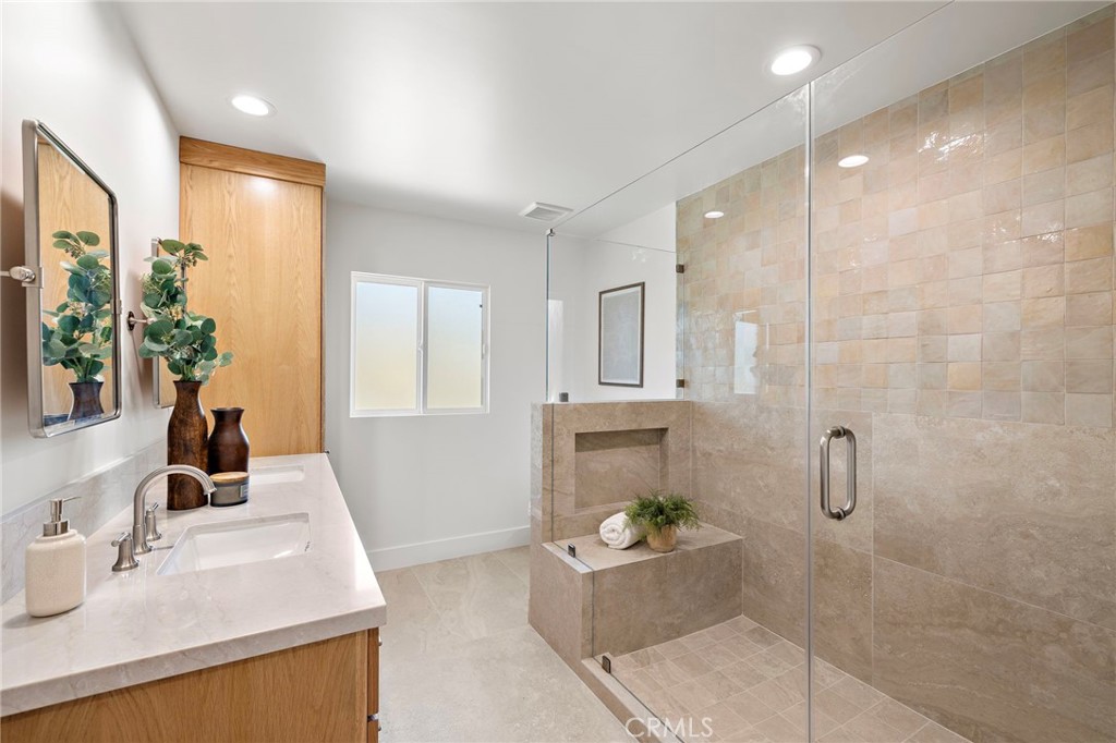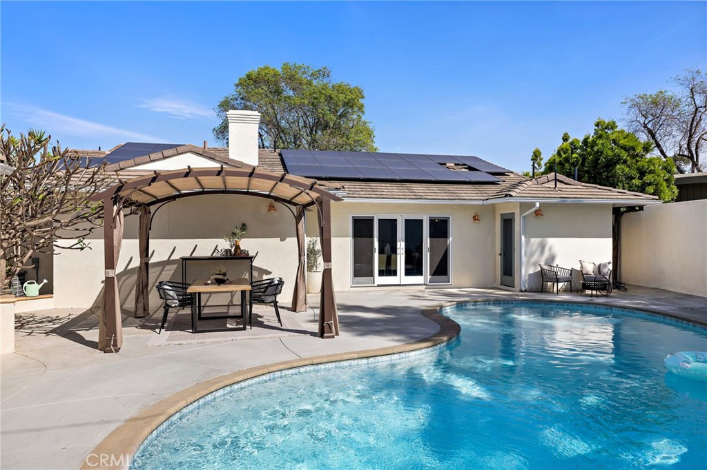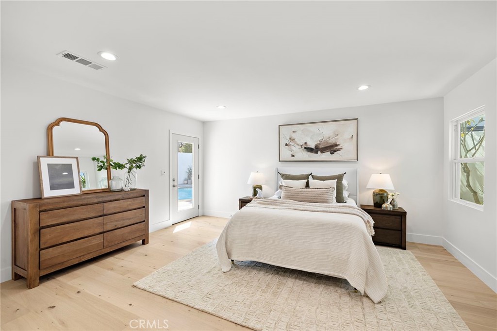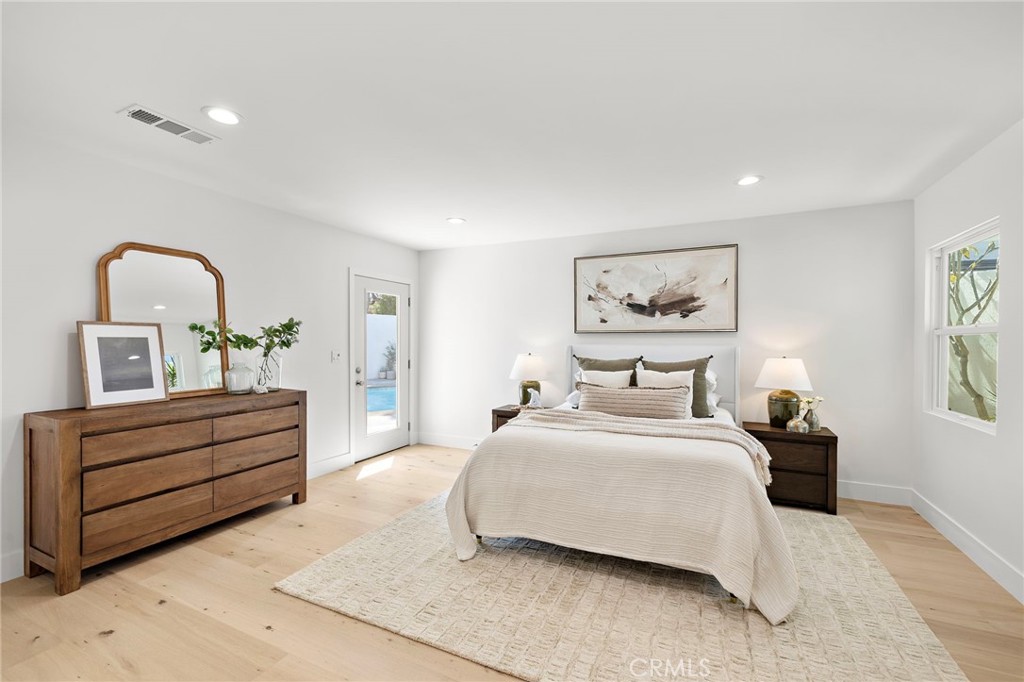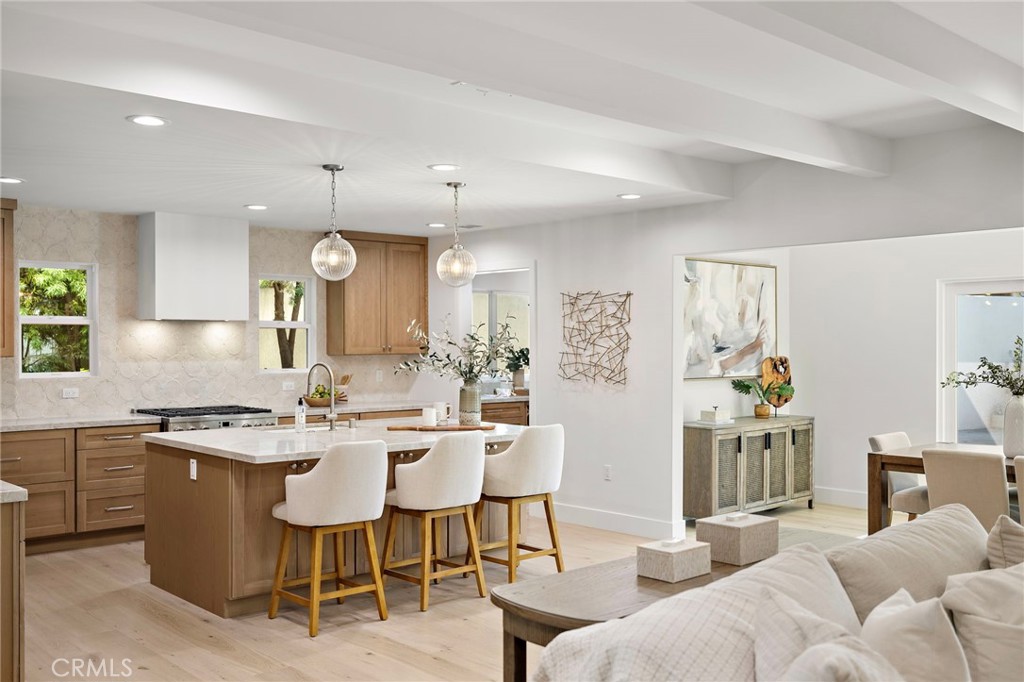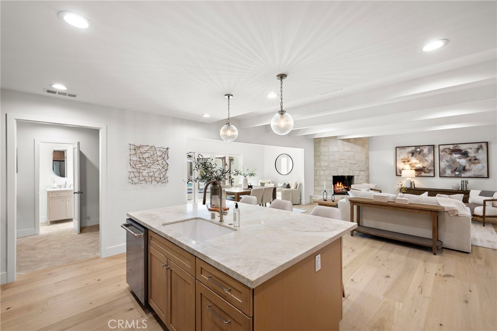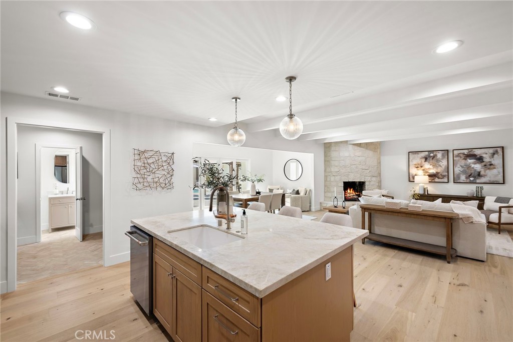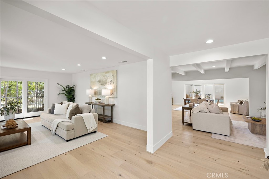 PARK ESTATES | This beautifully upgraded residence offers a rare opportunity to own a home with brand-new finishes and a fresh, never lived in feel. Completely transformed with today's most desired features, this stunning residence embodies the warmth and ease of an organic California ranch style home where curated design, natural materials, and thoughtful craftsmanship come together in perfect harmony. Every space has been thoughtfully redesigned with a focus on effortless indoor-outdoor living featuring all new engineered oak flooring and a cohesive palette that guides you through beautifully redefined spaces. The formal living room (potential home office/flex space/fourth bedroom) off the entry features a fireplace and sliders leading to a serene private patio, one of several outdoor spaces throughout the property. The gorgeous and BRAND NEW open concept kitchen features a large island with Taj Mahal quartzite, custom backsplash, generous use of cabinetry, all-new appliances, and an inviting flow into the family room. A walk-in butler's pantry with beverage service, cabinetry, and wine fridge elevates both daily living and effortless entertaining. A well-placed powder room off the kitchen also connects directly to the pool. The family room centers around a cozy fireplace and opens to the dining room. All the bedrooms have new Milgard windows and bathrooms have been fully upgraded with designer-selected tilework, fixtures, and finishes. The separate bedroom wing boasts three bedrooms and two additional bathrooms. The primary suite off the pool features backyard views, a walk-in closet and a stunning spa-inspired bath. The exterior is just as thoughtfully renewed...the pool has been recently plastered with new waterline tile accents as well as multiple patio areas creating endless opportunities for outdoor living at its finest. There is a long, elegant driveway with an electronic gate which leads to the finished two-car garage (optional casita/gym space). Additional upgrades include tankless water heater, central air, paid off solar panels, new doors, & new Milgard windows. Lovely curb appeal with all new sod, landscaping, & lighting. Residents enjoy the gorgeous tree-lined streets, wide lots, nearby park, and excellent schools. Set on a prime lot in one of the neighborhood's most desirable locations, this home offers the perfect blend of elevated design and Park Estates living.
