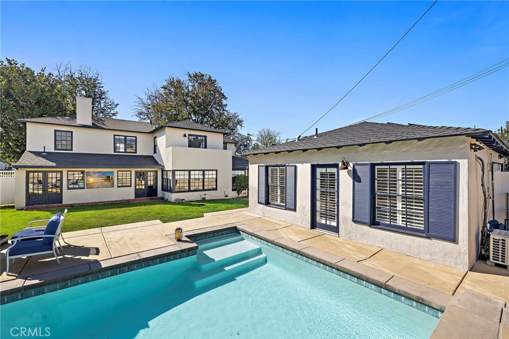BIXBY KNOLLS | MAIN HOME + GUEST HOUSE Positioned mid-street along the famed and coveted tree-lined stretch of Myrtle Avenue, this residence presents a home of architectural warmth, thoughtful design, and timeless neighborhood charm. A formal entry welcomes you into a thoughtfully composed interior featuring a formal living room and formal dining room, each filled with natural light streaming through abundant windows. The main home offers 3 bedrooms and 3 bathrooms, with interiors that feel both refined and effortlessly livable. The open-concept kitchen flows seamlessly into the family room and is appointed with a center island and charming banquette seating, creating a natural gathering space. Just beyond, the sun room serves as an inviting flex space, complete with a beverage center and media area, ideal for both relaxing and working from home. A convenient downstairs powder room adds to the home's functionality. The primary suite is a true retreat, featuring window seating and serene views overlooking both the front and back yards. The en-suite bathroom is thoughtfully designed with dual sinks, a soaking tub, and a steam shower, offering a spa-like experience at home. Complementing the main residence is a fully reimagined detached guest house, complete with its own A/C, Murphy bed, countertop with sink and fridge, and an updated bathroom featuring a steam shower and is perfect for hosting guests, a private office, or multi-generational living. Set on a generous 9,471 square foot lot, among the larger parcels in the neighborhood, the outdoor experience is equally compelling. A newer pool and spa anchor the backyard, with the spa showcasing two elegant spillover features into the pool. A brick patio and expansive grassy area complete the setting, offering the RARE combination of the backyard that has it all. Solar panels add efficiency and added value. The two-car garage, paired with an additional parking pad, features a freshly poured concrete floor and new epoxy finish. Located in the heart of Bixby Knolls, this home offers a lifestyle that is both vibrant and community-oriented. Stroll to the nearby schools just moments away. Evenings can be spent at First Fridays as Atlantic Avenue comes alive with art and music, or enjoying nearby favorites like Nonna Mercato, Steelcraft, and Philz along with a curated mix of coffee shops and boutiques just moments away. This an exceptional home that balances design, function, and location beautifully.