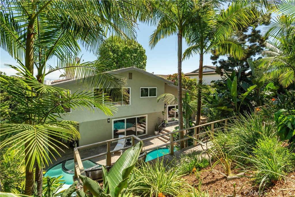 BIXBY HILL | Welcome to 905 Hillside Drive, a private sanctuary located within the 24 hr guard gated community of Bixby Hill where tree lined streets and expansive executive homes create one of Long Beach's most coveted residential enclaves. Set on a generous lot, this 4 bedroom, 4 bathroom residence spans 3,569 square feet and offers a thoughtfully designed floor plan. The home's sense of retreat is welcoming beginning with a charming front courtyard just off the kitchen surrounded by mature trees and lush greenery. Inside, the home unfolds with multiple well thought out living spaces. There is a large formal living room with backyard views, formal dining room off the kitchen, and a separate family room complete with a fireplace and game area. The sunny kitchen features ample cabinetry, built in refrigerator, new wine fridge, and island seating. A downstairs bedroom provides flexibility for guests or multigenerational living, while a private home office offers the option for a fifth bedroom if desired. Two bathrooms are conveniently located on the main level, including a powder room and a bath with direct access to the backyard, perfect for pool or outdoor use. Enjoy the convenient inside laundry room and direct access to the two car garage with electric car charging station. Upstairs, the expansive primary suite is complete with a spacious lounge area, office nook, walk in closet, and a luxurious bathroom featuring walk in shower and separate soaking tub. The scale of the home continues throughout including two additional upstairs bedrooms offering generous proportions and a layout that lives beautifully. The backyard is nothing short of extraordinary. Designed as a true outdoor retreat, the terraced landscape features meandering pathways, multiple elevated seating areas, a tranquil pond, and thoughtfully designed spaces. The grounds feel organic, tropical, and completely transportive offering a setting that is both magical and serene with beautiful views from multiple vantage points. Bixby Hill is known for its central location and elevated lifestyle, with residents enjoying access to Rancho Los Alamitos, its stunning botanical gardens and rich history, as well as proximity to Alamitos Bay, CSULB, and top rated schools including Sato Academy of Mathematics and Science. This is more than just a home, it is a private retreat, a place to unwind, and a rare opportunity to own within one of Long Beach's most sought after communities.